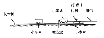 4、实验题 某同学设计了一个用打点计时器验证动量守恒定律的实验:在小车A的前端粘有橡皮泥,推动小车A使之作匀速运动.然后与原来静止在前方的小车B相碰并粘合成一体,继续作匀速运动,他设计的具体装置如下图所示.在小车A后连着纸带,电磁打点计时器电源频率为50Hz,长木板垫着小木片用来平衡摩擦力.
