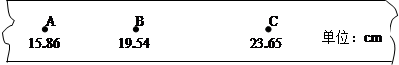 在“验证机械能守恒定律”的实验中,已知打点计时器所用电源的频率为50 Hz,查得当地的重力加速度g=9.80 m/s2,测得所用重物的质量为1.00 kg。实验中得到一条点迹清晰的纸带,把第一个点记作O,每两个计数点之间有四点未画出,另选连续的3个计数点A、B、C作为测量的点,如图所示。经测量知道A、B、C各点到O点的距离分别为50.50 cm、86.00 cm、130.50 cm。