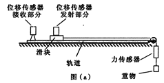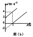 2、实验题 某实验小组设计了如图(a)所示的实验装置,通过改变重物的质量,利用计算机可得滑块运动的加速度a和所受拉力F的关系图像。他们在轨道水平和倾斜的两种情况下分别做了实验,得到了两条a-F图线,如图(b)所示。滑块和位移传感器发射部分的总质量m="_____________" kg;滑块和轨道间的动摩擦因数μ=_____________。(重力加速度g取