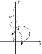 (3) 质子第三次穿越Y轴后,在电场中作类平抛运动,由于v0与Y正方向成45°角,