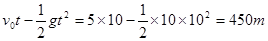 3、填空题 (4分)气球以5 m/s的速度匀速竖直上升,从气球上掉下一个物体,经10 s到达地面.则物体刚脱离气球时离地面的高度为 。(g=10 m/s2).