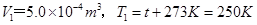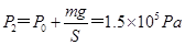 5、计算题 内壁光滑的导热气缸竖直放置,用不计质量的活塞封闭了一定质量的理想气体,活塞上物了质量m=0.5kg的沙子,整个装置放在t=-23℃的恒温环境中,此时气体的体积为V1=5.0×10-4m3,再将温度缓慢的调到t2=27℃,并保持不变。此时体积变为V2,然后在t2=27℃的环境中,缓慢将活塞上方的沙子移除,气体的体积将变为V3。已知活塞面积S=1.0×10-4m2。大气压强P0=1.0×105Pa,g取10m/s2。求: