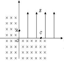 4、计算题 如图所示,在坐标系Oxy的第一象限中存在沿y轴正方向的匀强电场,场强大小为E。在其他象限中存在匀强磁场,磁场方向垂直纸面向里。A是y轴上的一点,它到坐标原点O的距离为h;C是x轴上的一点,到O的距离为l。一质量为m、电荷量为q的带负电的粒子以某一初速度沿x轴方向从A点进入电场区域,继而通过C点进入磁场区域,并再次通过A点,此时速度与y轴正方向成锐角。不计重力作用。试求: