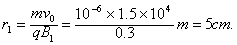 (2)当磁场垂直纸面向里时,电荷运动的半径: