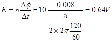 4、填空题  正方形导线框abcd,匝数为10匝,边长为20cm,在磁感强度为0.2T的匀强磁场中围绕与B方向垂直的转轴匀速转动,转速为120 r/min。当线框从平行于磁场位置开始转过90°时,线圈中磁通量的变化量是____wb,平均感应电动势为____V。
