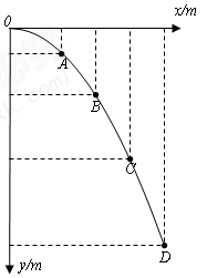 2、填空题 如图,是在研究平抛运动实验中某同学描出的一些点,坐标原点O点为平抛的抛出点,这些点的坐标己经测出,分别为:A(0.2,0.2),B(0.3,0.45),C(0.4,0.8),D(0.5,1.25),横、纵坐标单位为米,