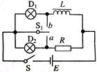 当S1接b 时,灯泡D1被短路,D2与电阻R串联,故闭合S时,D2不会渐渐变亮,故C是不对的;