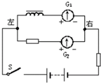 4、简答题 在图所示的电路中,两个灵敏电流表G1和G2的零点都在刻度盘中央,当电流从“+”接线柱流入时,指针向右摆;电流从“-”接线柱流入时,指针向左摆.在电路接通达到稳定状态后再断开的瞬间,下面哪个说法符合实际______