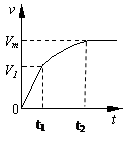 5、计算题 一辆质量为2.0×103kg的汽车以恒定牵引力在水平公路上行驶,所受阻力为车重的0.2倍。其启动图像如图,已知t1=4s,此时速度v1=12m/s,t2=12s时,速度达到最大值Vm,求: