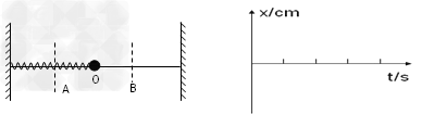 3、计算题 水平杆上振动的弹簧振子,如下图所示,在AB范围内做简谐振动,已知AB间的距离为16cm,振子从A开始运动到第二次经过O的时间为3s,不计球与杆间的摩擦,(取向右为正) 求:
