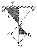 1、计算题 两根艮度相等的轻绳,下端悬挂一质量为m的物体,上端分别固定在水平天花板上的M、N点,M、N两点间的距离为x。如图所示,已知两绳所能承受的最大拉力均为FT,则每根绳的长度不得短于多少?