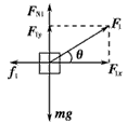 参考答案:解:对行李箱进行受力分析,并画出受力分析图,应用正交分解。拉行李箱时:? F1cosθ=f1? ①