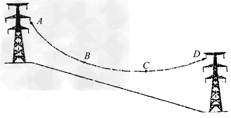 4、选择题 发生雪灾时,输电线上的积雪结冰容易导致电线断裂,铁塔倾斜倒伏.若图中两座铁塔间线路上覆盖了厚度均匀的冰雪,在电线上取A、B、C、D四个点,其中A、D两点靠近铁塔,B点与D点高度相等,C点是线路中的最低点,下列关于这四点处张力情况的说法中正确的是