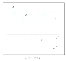 3、填空题 “测定玻璃的折射率”实验中,在玻璃砖的一侧竖直插两个大头针A、B,在另一侧再竖直插两个大头针C、D. 在插入第四个大头针D 时,要使它 _____________. 题12B-2 图是在白纸上留下的实验痕迹,其中直线a、a’是描在纸上的玻璃砖的两个边. 根据该图可算得玻璃的折射率n =" _____________." (计算结果保留两位有效数字)