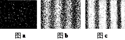 2、实验题 如图所示,用很弱的红光做双缝实验,图a的曝光时间最短、图b、图c的曝光时间依次增加,图a中的亮点是光子落在胶片上留下的痕迹,长时间曝光后最终形成了图c中明暗相间的条纹。这一实验的整个过程说明了光具有?性。如果改用紫光而其他实验条
