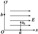 4、简答题 如图所示,a、b分别为x、y轴上两点,它们与原点O的距离相等,一束电子以初速度v0垂直于x轴从a点射入,由于匀强电场的作用,电子束恰好从b点射出,求电子从b点射出时的速度大小.