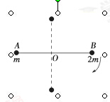 5、选择题 如图,质量分别为m和2m的两个小球A和B,中间用长为2L的轻杆相连,在杆的中点O处有一固定转动轴,把杆置于水平位置后由静止释放,在B球顺时针摆动到最低位置的过程中