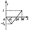 5、选择题 如图所示,两个垂直纸面的匀强磁场方向相反,磁感应强度的大小均为B,磁场区域的宽度均为a,一个正三角形导线框ADC(高为a)从图示位置沿图示方向匀速穿过两磁场区域,以逆时针方向为电流的正方向,则感应电流I与线框移动距离x的关系图像正确的是
