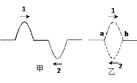 4、选择题 两列沿相反方向传播的振幅和波长都相同的半波,如图29(甲)所示,在相遇的某一时刻两列波“消失”,如图29(乙),此时图中a、b质点的振动方向是: