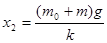 (2)放上重物重新平衡后 m0+mg=kx2,