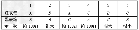 2、实验题 把电池(a),晶体二极管(b),电阻(c)中的某两个元件接入下图所示的黑箱中,A、B、C是接线时的三个接点.