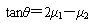 4、选择题 如图所示,固定斜面倾角为θ,整个斜面分为AB、BC两段,且2AB=BC。小物块P(可视为质点)与AB、BC两段斜面之间的动摩擦因数分别为μ1、μ2。已知P由静止开始从A点释放,恰好能滑动到C点而停下,那么θ、μ1、μ2间应满足的关系是