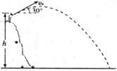 4、计算题 把质量为0.5Kg的石块从某高处以30o角斜向上方抛出,初速度是Vo=5m/s,落地速度为V1=15m/s(不计空气阻力)