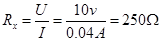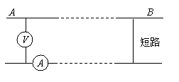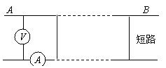 4、计算题 在相距40km的A、B两地架两条输电线,电阻共为800Ω,如果在A、B间的某处发生短路,这时接在A处的电压表示数为10V,电流表的示数为40mA,求发生短路处距A处有多远?如图所示.