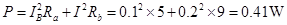 (3)电源的输出功率等于电源功率与内阻消耗的功率之差,即P机=PM-PQ=UMI-I2R=44-8=36W