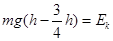 本题解析:因为空气阻力不计,所以过程中只有重力做功,。当它下落到高度为h时,物体下落的高度为h,根据动能定理可得,所以,B正确,