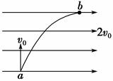 3、选择题 如图所示,一质量为m、电量为q的带电小球,以初速度v0从a点竖直向上射入匀强电场中,匀强电场方向水平向右.它通过电场中的b点时,速率为2v0,方向与电场方向一致,则a、b两点间的电势差为:( )