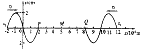 5、选择题 如图所示,两列简谐横波分别沿x轴正方向和负方向传播,两波源分别位于x=-2×10-1m和x=12×10-1m处,两列波的波速均为v=0.4m/s,两波源的振幅均为A=2cm。图示为t=0时刻两列波的图象(传播方向如图),此刻平衡位置处于x=0.2m和0.8m的P、Q两质点刚开始振动。质点M的平衡位置处于x=0.5m处,关于各质点运动情况判断正确的是