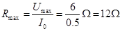 当电流取最小值0.5A时,变阻器的阻值最大,此时变阻器两端电压