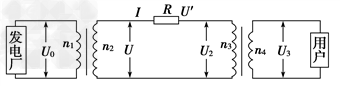Ω的输电线向远处用户送电,这时用户获得的电压和电功率是多少?假如,要求输电线上损失的电功率是输送功率的0.6%,则发电站要安装一个升压变压器,到达用户前再用降压变压器变为220 V供用户使用,不考虑变压器的能量损失,这两个变压器原、副线圈的匝