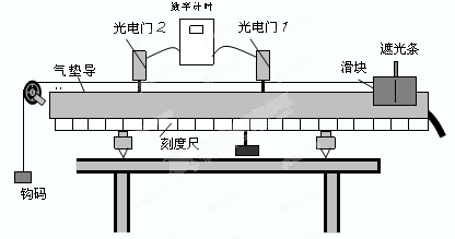 5、实验题 如图所示的实验装置来测定匀变速直线运动的加速度。已知两个光电门中心之间的距离s,测得遮光条的宽度d。该实验小组在做实验时,将滑块从图所示位置由静止释放,由数字计时器可以读出遮光条通过光电门1的时间Δt1,遮光条通过光电门2的时间Δt2,则滑块经过光电门1时的瞬时速度的表达式v1=?,滑块经过光电门2时的瞬时速度的表达式v2 =?,则滑块的加速度的表达式a=??。(以上表达式均用字母表示)。