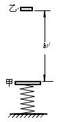 3、计算题 (18分)质量m="1.0" kg的甲物体与竖直放置的轻弹簧的上端连接,弹簧下端固定在地面上,如图所示。质量m="1.0" kg的乙物体从甲物体正上方,距离甲物体h="0.40" m处自由落下,撞在甲物体上在极短的时间内与甲物体粘在一起(不再分离)向下运动。它们到达最低点后又向上运动,上升的最高点比甲物体初始位置高H="0.10" m。已知弹簧的劲度系数k="200" N/m,且弹簧始终在弹性限度内,空气阻力可忽略不计,重力加速度g取10 m/s2。求: