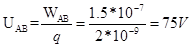 ,同理 。设C点电势为零,则B点电势为-200V,则A点电势为-125V,因此AC电势差为-125V。