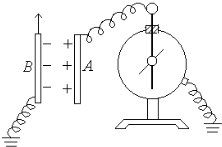 1、选择题 如图所示,平行板电容器的极板A与一静电计相接,极板B接地,若极板B稍向上移动一点,由观察到的静电计的指针变化,作出平行板电容器的电容变小的结论,其依据是( )