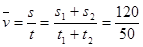 本题解析:根据平均速度的定义公式,s为总位移,t为总时间,等于前一段位移与后一段位移所用时间之和。