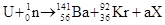 U俘获一个慢中子后发生裂变,核反应方程式为,