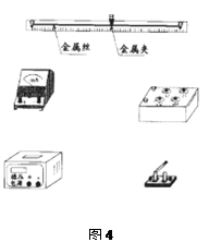 ①他们截取了一段金属丝,拉直后固定在绝缘的米尺上,并在金属丝上夹上一个小金属夹,金属夹可在金属丝上移动。请根据现有器材,设计实验电路,并连接电路实物图4