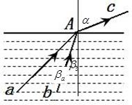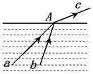 4、选择题 如图所示,两束单色光a、b从水面下射向A点,光线经折射后合成一束光c,则下列说法正确的是( )