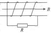 4、计算题 (9分)如图所示,线圈匝数n=100匝,面积S=50cm2,线圈总电阻r=10Ω,外电路总电阻R=40Ω,沿轴向匀强磁场的磁感应强度的变化率为5T/s,求: