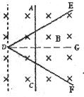 2、选择题 如图所示,在水平面上固定一光滑金属导轨EDF,∠EDG=∠FDG=30°,一质量为