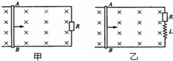 2、选择题 如8,甲、乙两8为与匀强磁场垂直放置4两个金属框架,乙8除了一个电阻为零、自感系数为L4线圈外,其他部分与甲8都相同,导体AB以相同4加速度向右做匀加速直线运动.若导体AB通过4位移相同,则( )