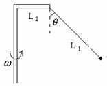 1、计算题  (10分)如图所示,已知绳长L1,水平杆长L2,小球的质量 m,整个装置可绕竖直轴转动,当该装置从静止开始转动,最后以某一角速度稳定转动时,绳子与竖直方向成角