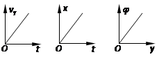 5、选择题 一带电粒子在匀强电场中只受电场力的作用而运动,现将其运动正交分解为x和y两个方向,下列三个图分别为粒子y方向的速度随时间变化图象、x方向的位移随时间变化图象、电势φ沿y方向的分布图象,由图象可知
