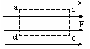 3、选择题   图所示的匀强电场场强为103N/C,ab=dc=4cm,bc=ad=3cm.则下述计算结果正确的是(?)