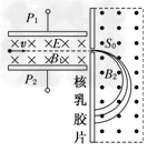 C.在B2磁场中运动半径越大的粒子,质量越大?