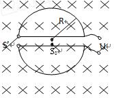 5、计算题 (8分)如图所示,回旋加速器的半径为R,匀强磁场的磁感应强度为B,高频电场的电压为U,S0为粒子源,S’为引出口.若被加速的粒子质量为m,电荷量为q,设带电粒子质量不变,且不考虑粒子从粒子源射出时的能量.问: